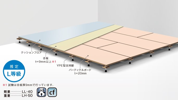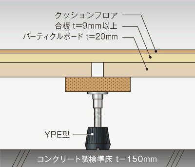 他の支持脚でも施工可能。遮音性能についてはお問い合わせください。 YPEタイプ/クッションフロア仕様