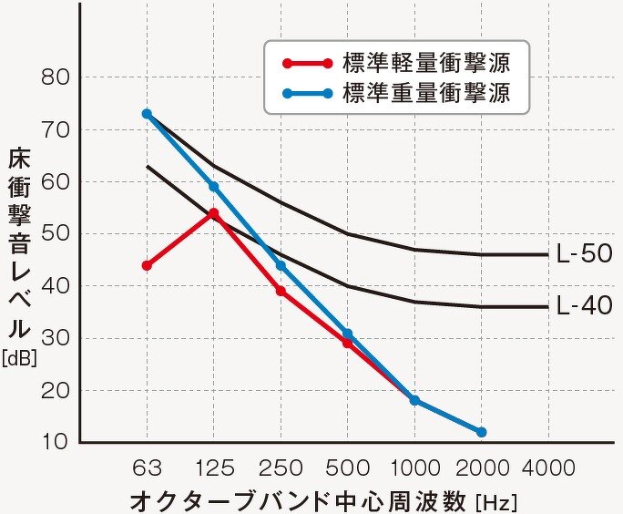 | 標準軽量衝撃源[dB] | 15.9 | 12.9 | 28.7 | 41.5 | 53.3 | 59.8 |