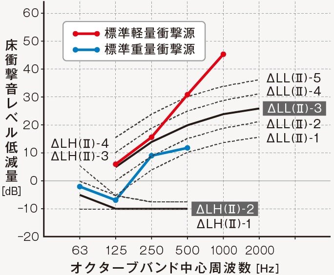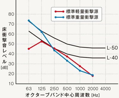 | 標準軽量衝撃源[dB] | 7.7 | 14.4 | 27.4 | 39.4 | 46.6 | 47.1 |